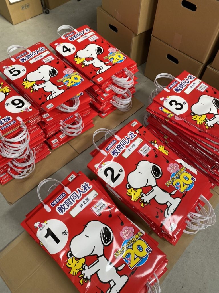 テストやドリルを袋にいれる作業を行っています。 2月に入り新学期の準備で忙しくなります。